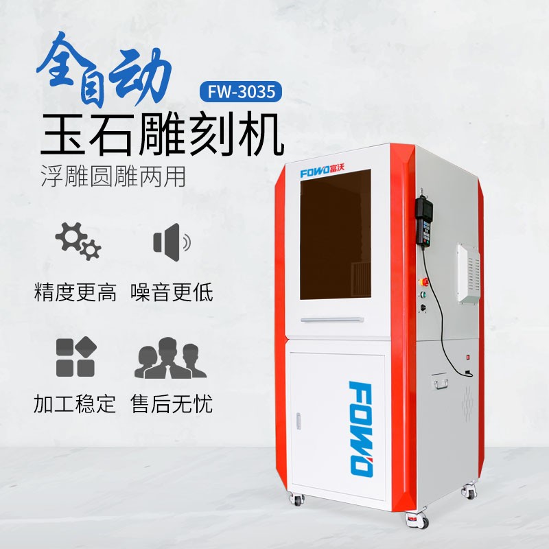 平雕、浮雕两用 一款针对玉石材质定制开发的雕刻机 隔音防尘,高效健康 精度:0.01mm, 驱动:混合伺服, 多件连雕、进口滚轴丝杆、加粗导轨、手柄系统(简化操作)、立式滑轮方便搬动。 高精度加工翡翠等各类软硬玉石!